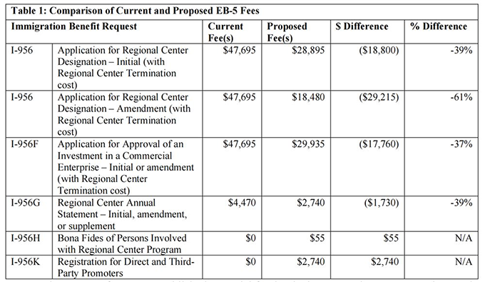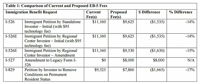 根據(jù)移民局(USCIS)公布的草案,針對EB-5投資人提交的I-526(直投申請)和I-526E(區(qū)域中心申請),申請費用將從現(xiàn)行的$11,160美元,擬議調(diào)整為$9,625美元。這意味著,每位EB-5投資人的申請成本將直接減少$1,535美元,降幅約為14% 。